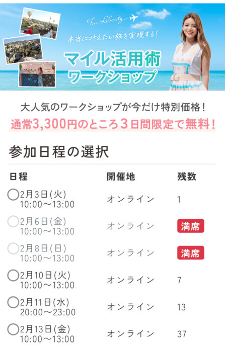 ②公式LINE の「マイル活用術ワークショップ」をクリックして予約する